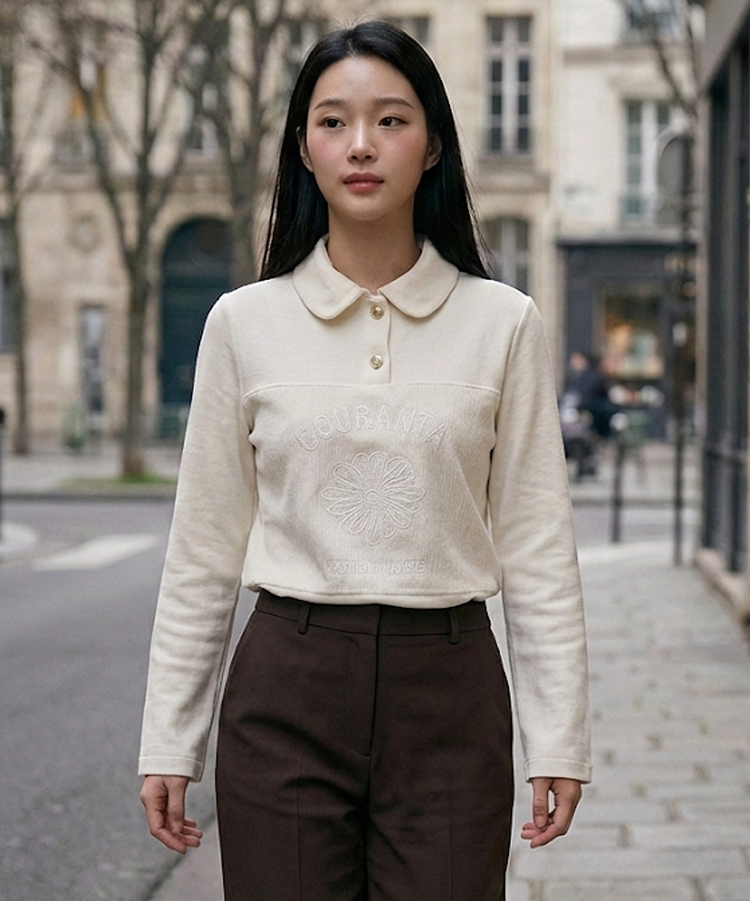 플라워 자수 캐주얼 카라 티셔츠_CLDWTS216