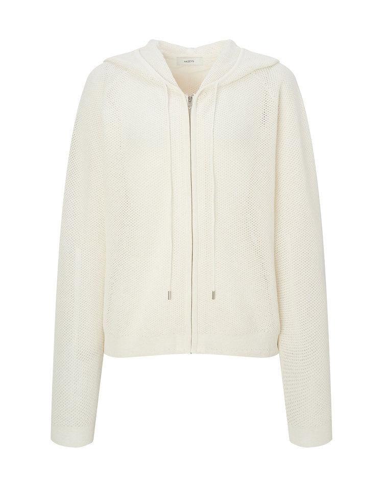 [헤지스 여성]아이보리 짜임 면혼방 후드집업니트_HSSW5CC32IV