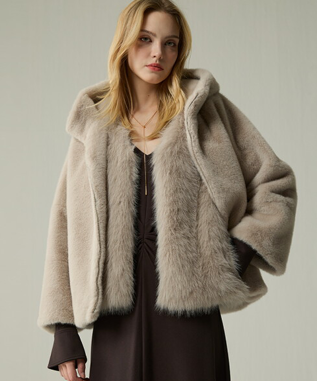 (1+1) (25FW) FAUX 밍크 하프코트 + 베스트 SET