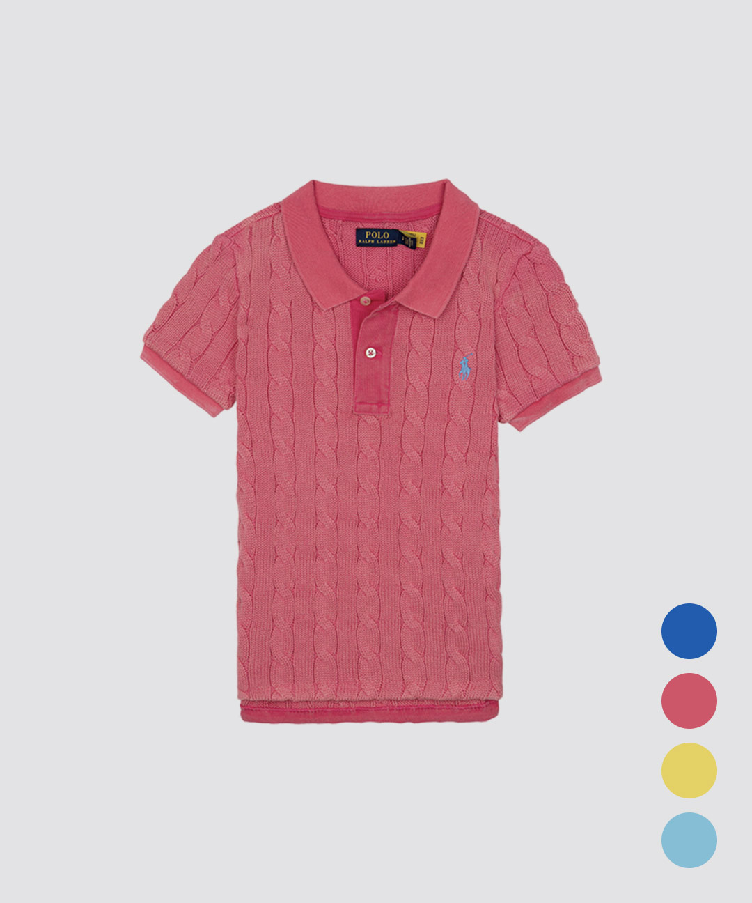 [폴로 랄프로렌] 여성 슬림핏 케이블 반팔 카라넥 니트