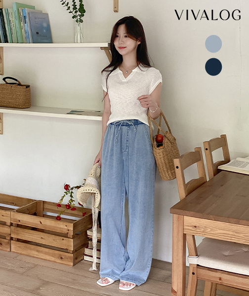[비바로그] 쿨텐셀 아이스 데님 와이드 밴딩 팬츠