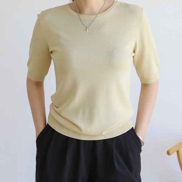 시원한소재 기본 라운드 반팔 니트 v00270
