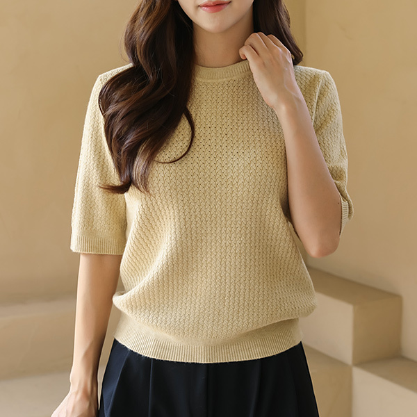 비스코스 스카시 라운드 반팔 니트 v00414
