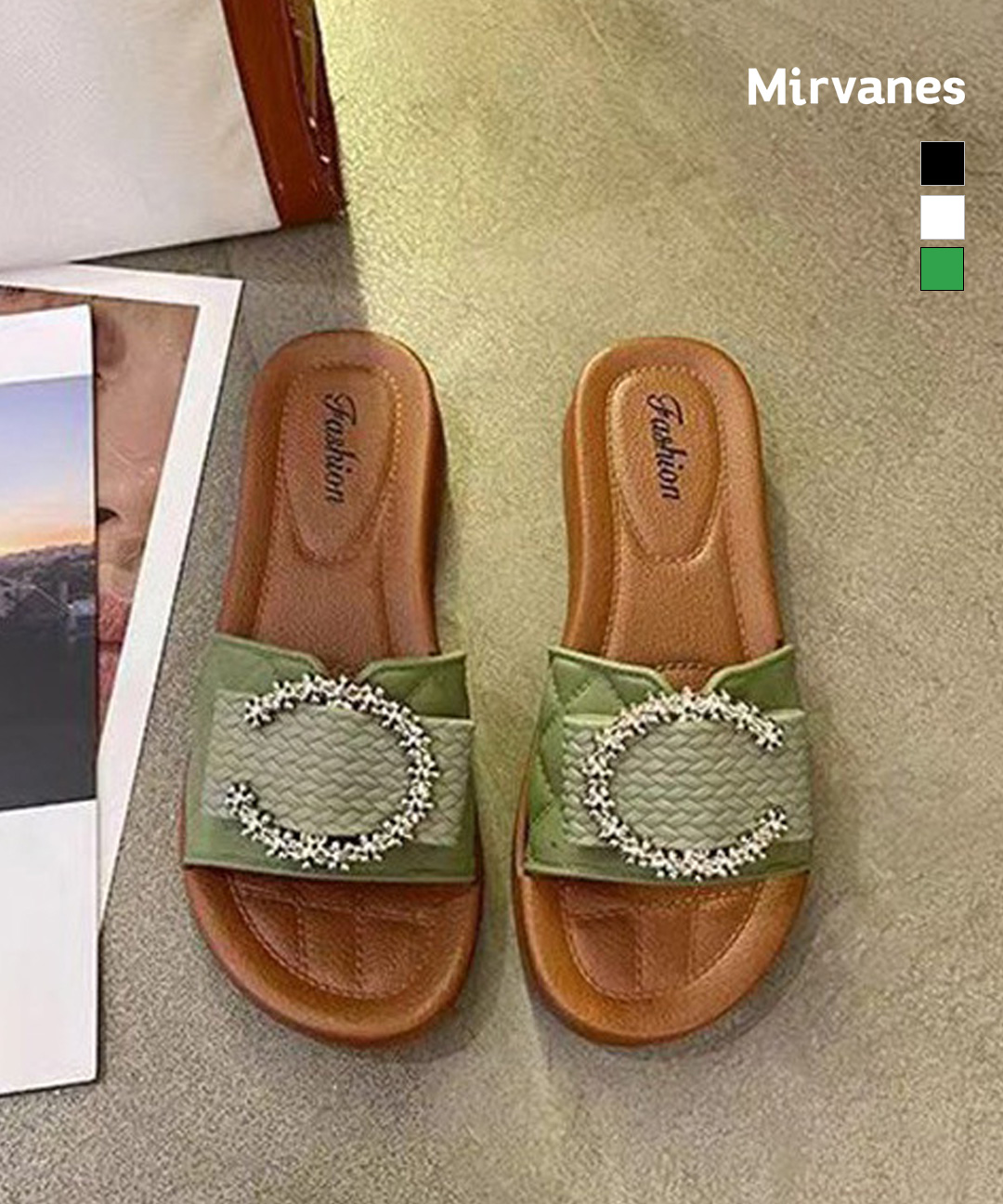 미르바네스슈즈 럭셔리 큐빅 버클 슬리퍼_2cm