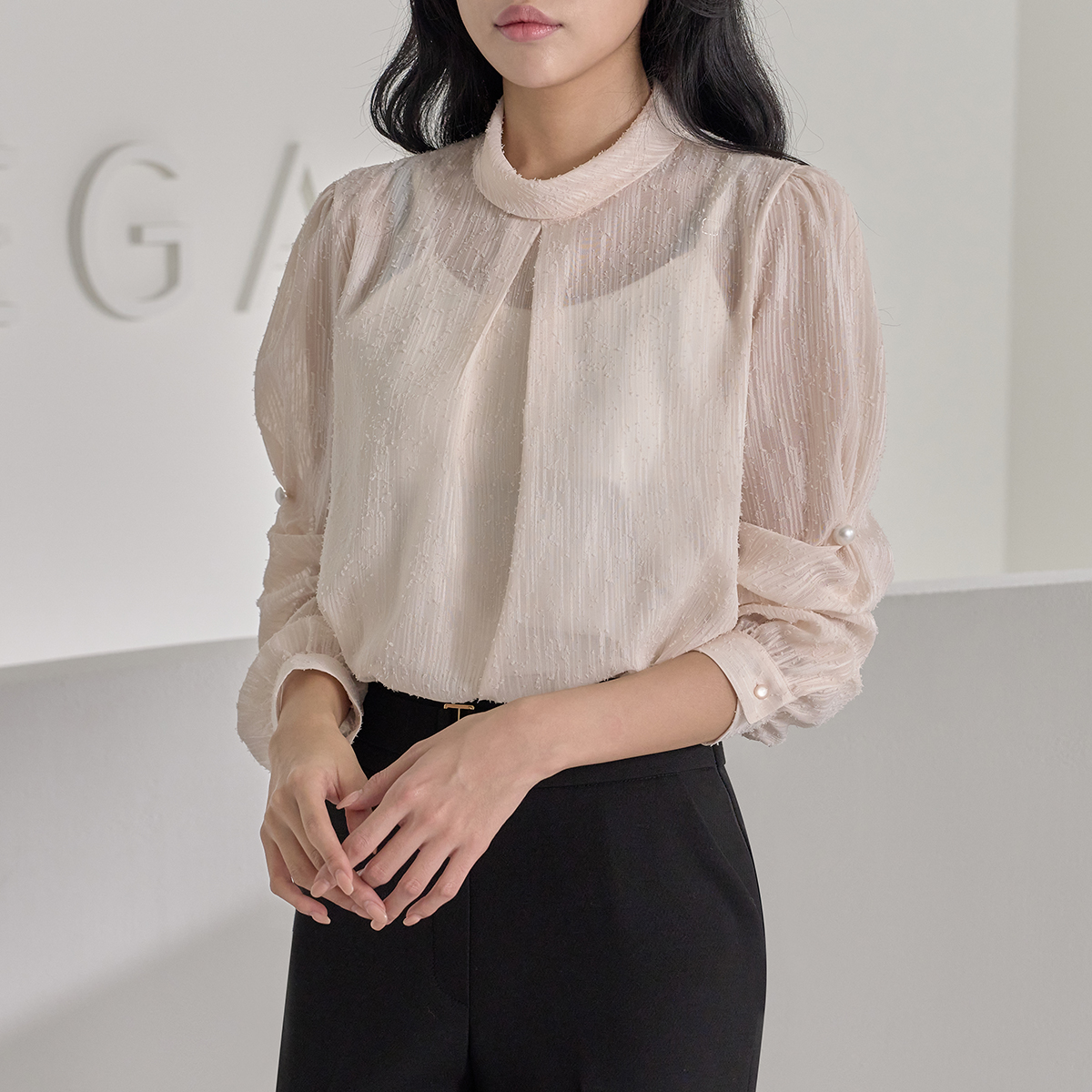 [55~77] 루티 하프넥 시스루 블라우스