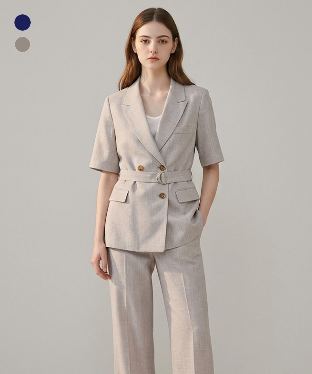 (SET-UP) 린넨 반팔 자켓 + 린넨 스트레이트 팬츠