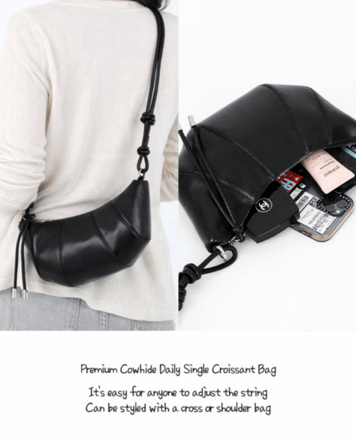[당일출고🚀/MD추천🔥/리얼 소가죽] 프리미엄 천연 소가죽 데일리 크루아상 싱글백 직장인, 대학생, 여행, 데이트, 데일리룩 맞춤 필수 가방
