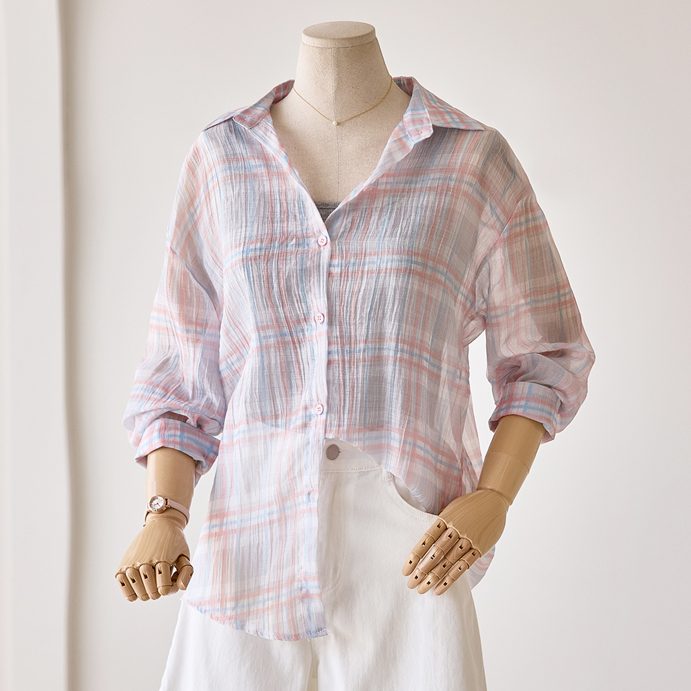 [한정수량][커스텀에이블] 체크 시스루 셔츠_T2507BL074B