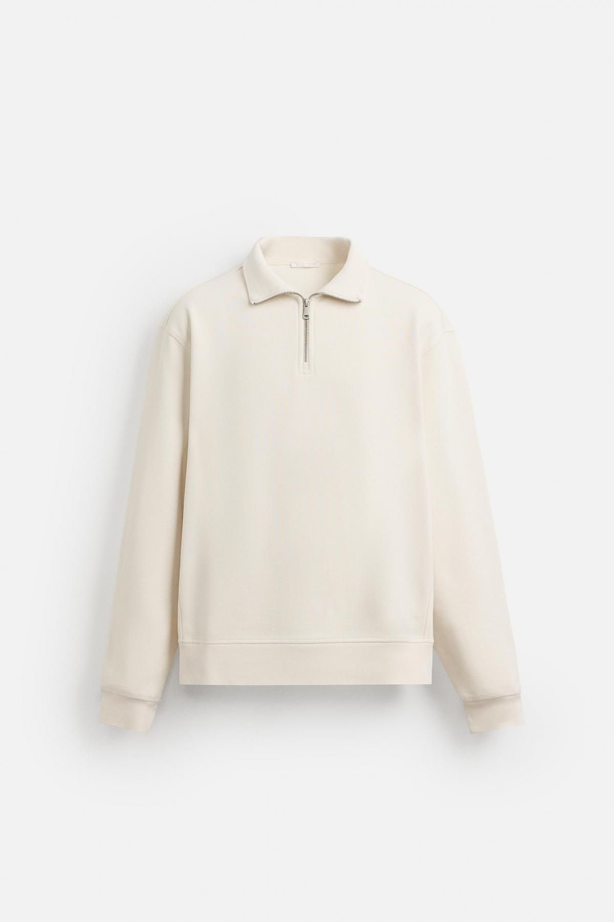 자라 오버핏 베이직 지퍼넥 스웨트셔츠 0761/311/251 OYSTER-WHITE