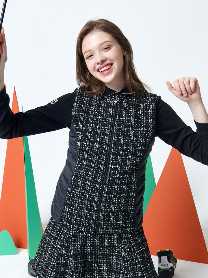 [디즈니골프]여성 배색 트위드 패딩 조끼 베스트 DM3LJV009