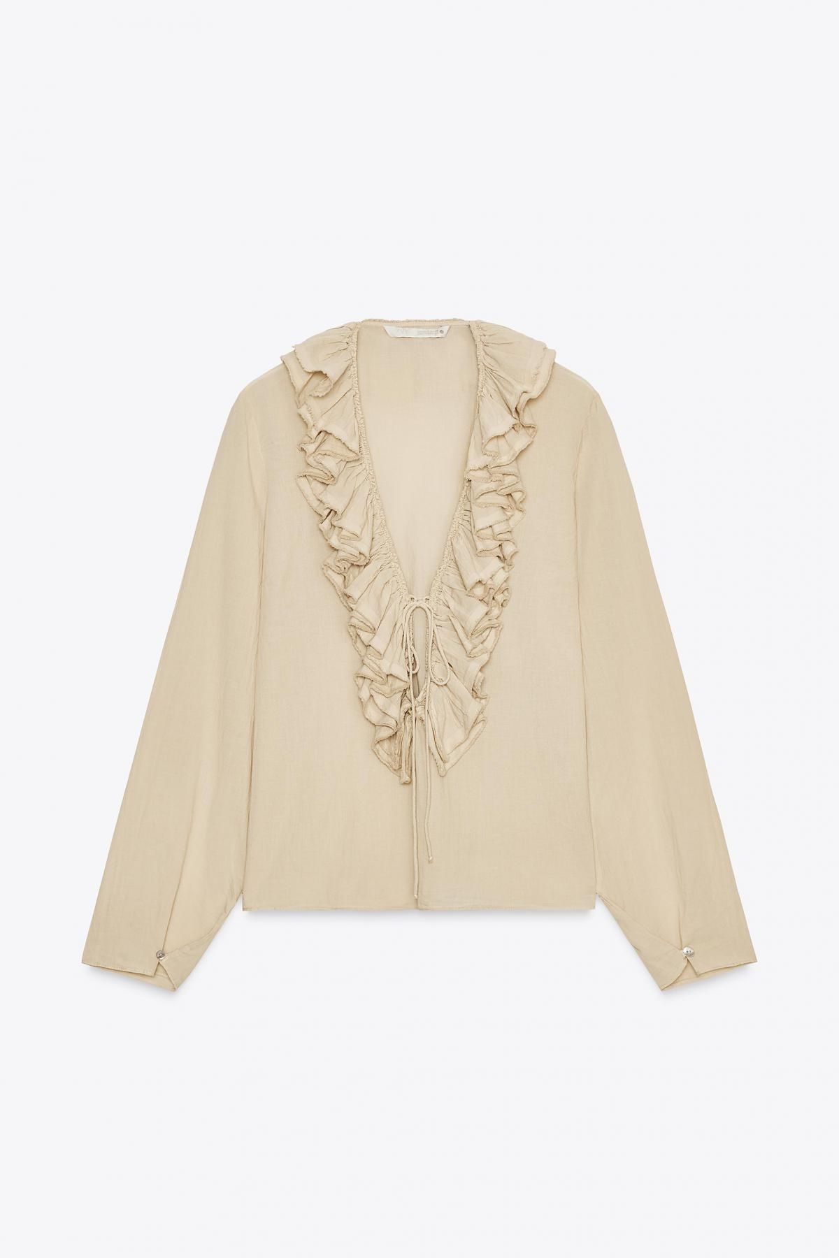 자라 러플 브이넥 코튼 블라우스 8225/278/711 SAND