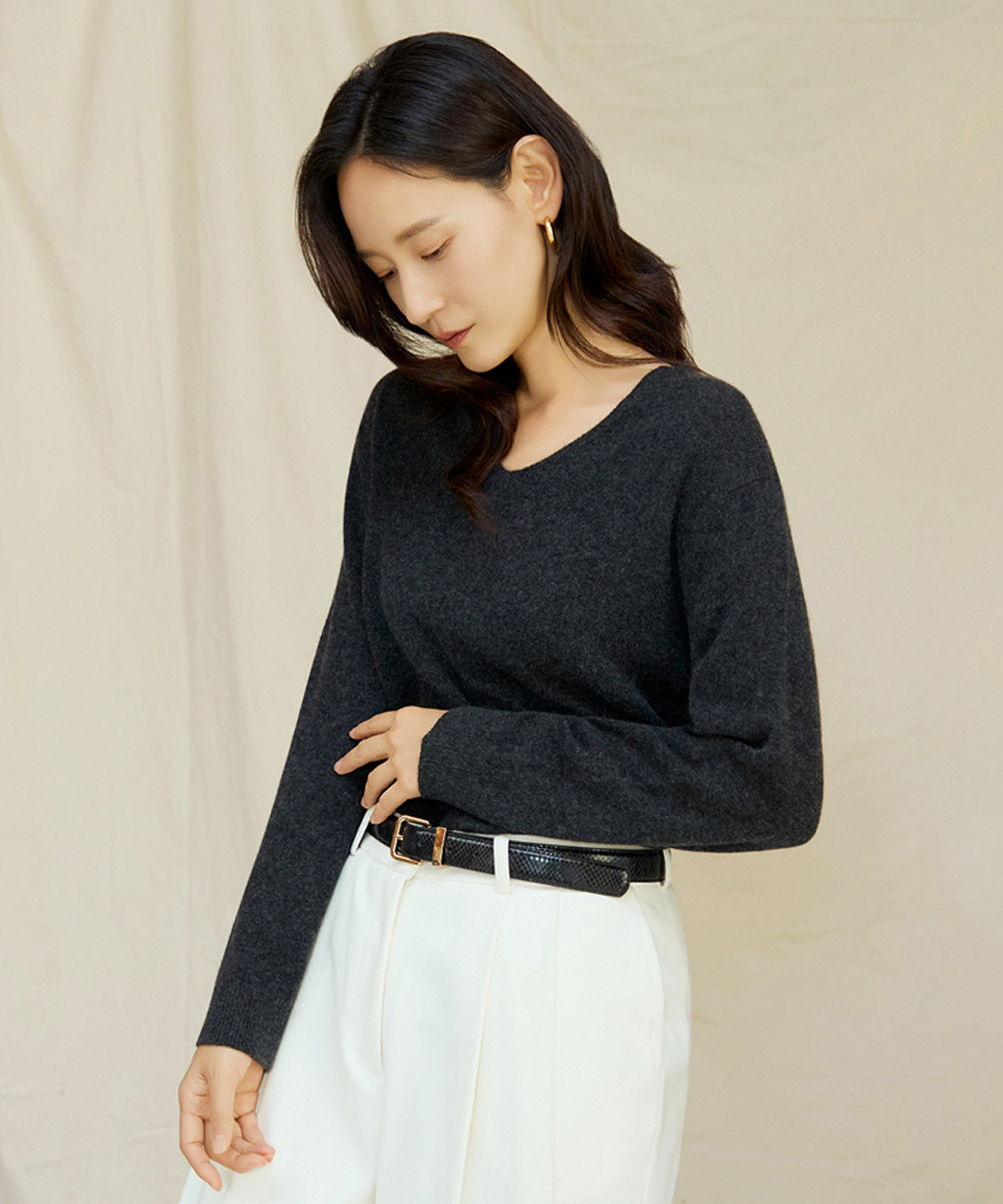 (25FW) 시그니처 퓨어캐시미어100 V넥 니트