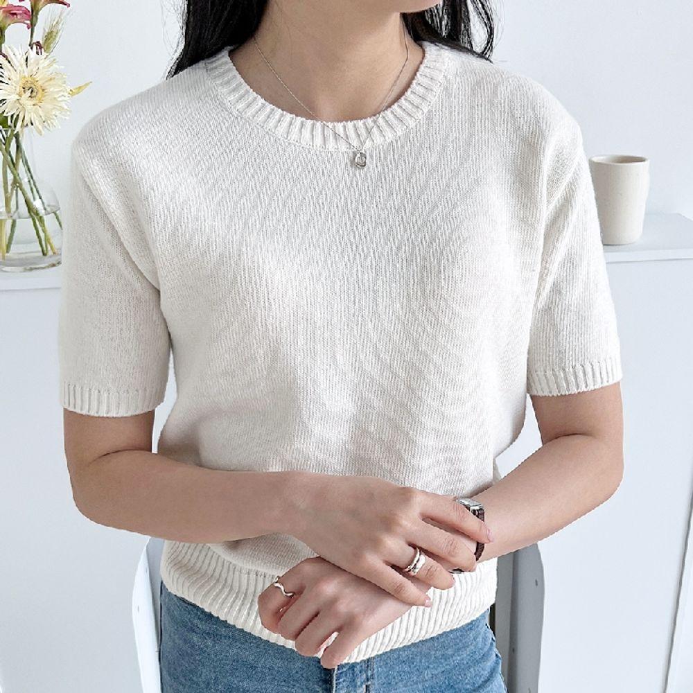 베이직 여자 반팔 니트 라운드넥 티셔츠