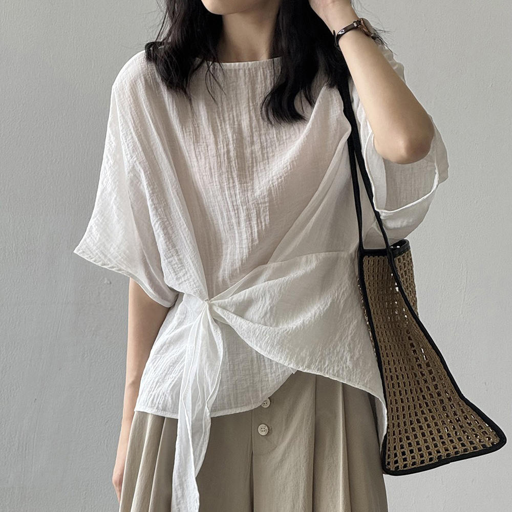 편안한 스타일 꼬임 허리 스트링 언밸런스 루즈핏 셔츠 블라우스 3color