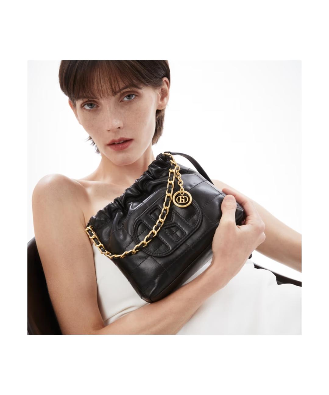 [헤지스ACC] H패치 블랙 레더 퀼팅 체인 호보 숄더백 S HIBA5E553BK