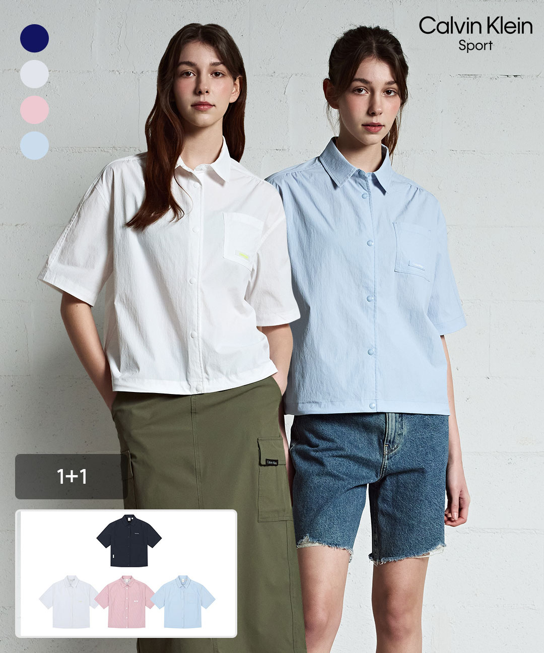 1+1 [캘빈클라인] 포켓 반팔 셔츠 여성세트