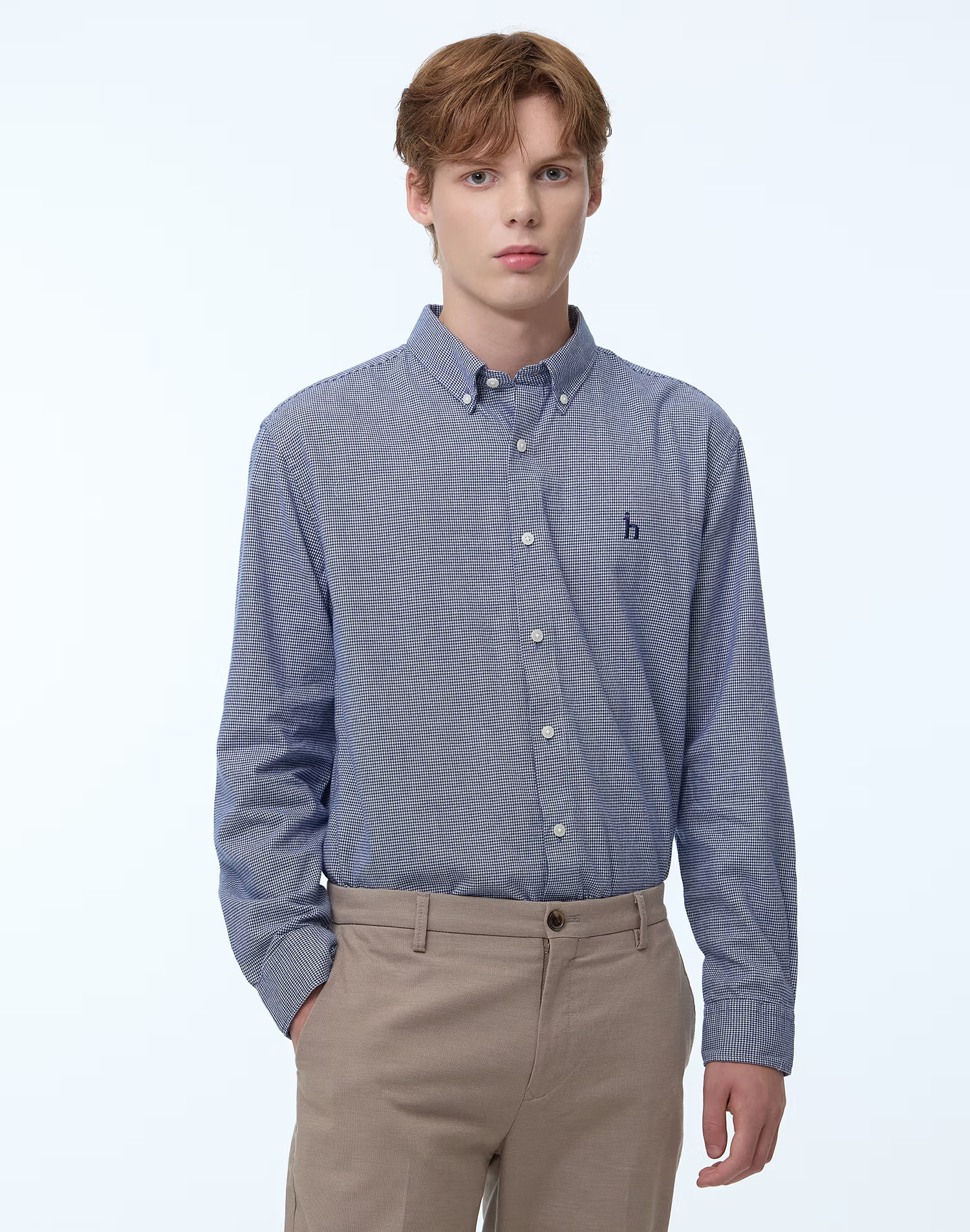 [헤지스 남성]네이비 체크 면 긴팔캐주얼셔츠_WHSH4D402N2