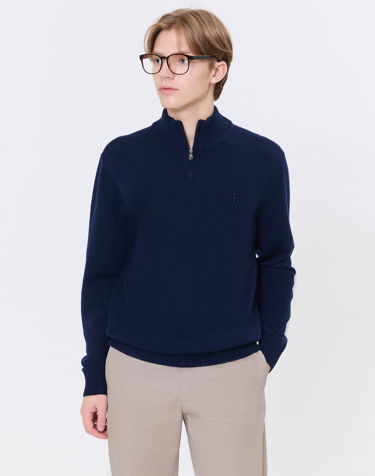 [헤지스 남성]네이비 짜임 울 반집업니트_WHSW4D363N2