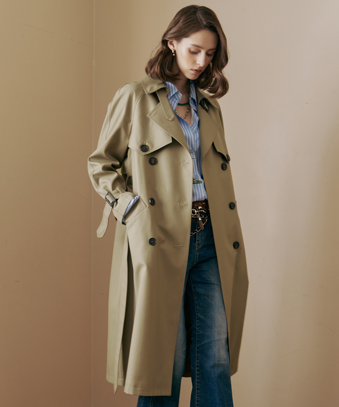[마쟈] 클래식 더블 브레스티드 트렌치코트