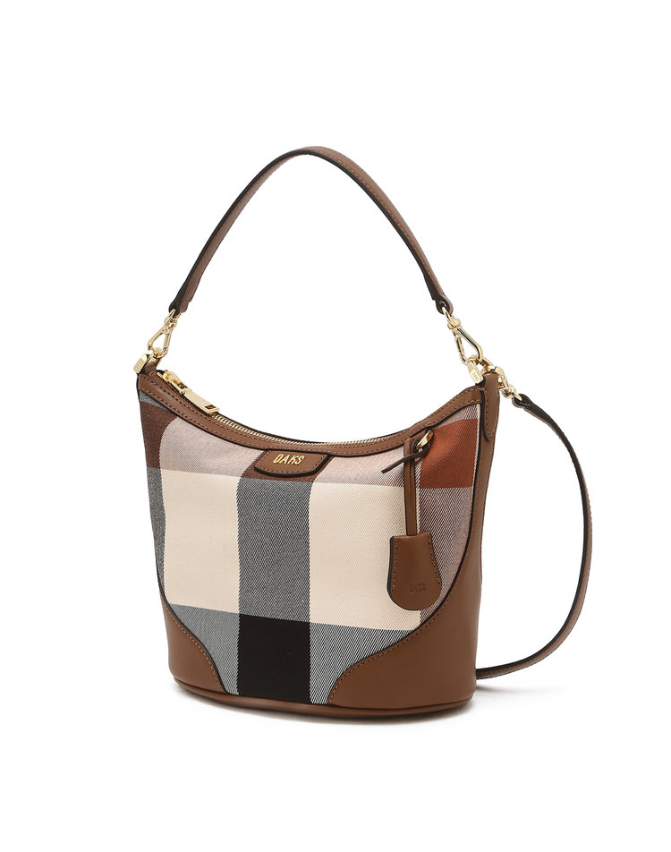 [25FW 닥스 ACC 여성]브라운 소가죽 콤비 체크 자카드 숄더백_DCBA5F600W2