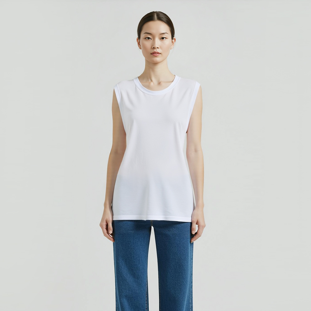 [샵앤] 국산 여성 라운드 무지 밑가림 소매 민소매 티셔츠 DAI-WSH-20765