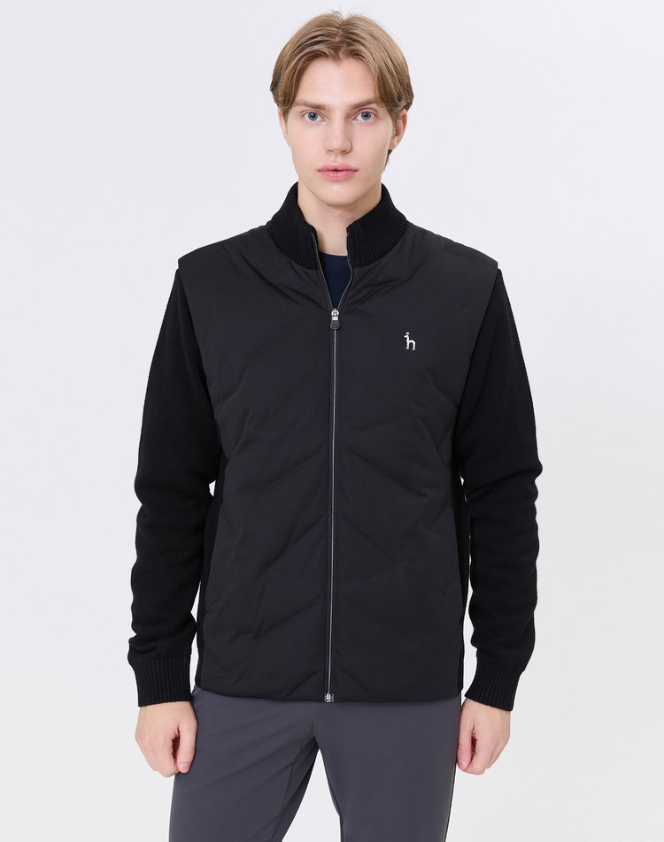 [헤지스 골프 남성]하이브리드 경량 패딩 집업니트 BLACK_WPSW4D907BK