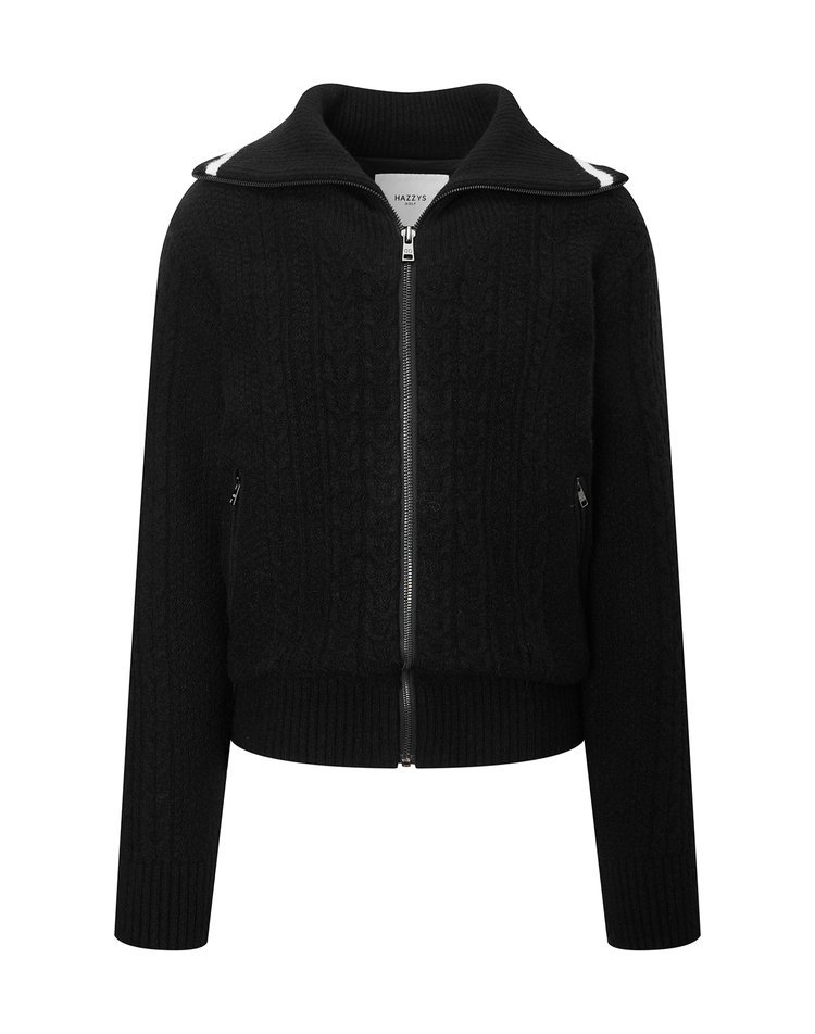 [헤지스 골프 여성]하이넥 케이블 집업 니트 BLACK_WWSW4D731BK