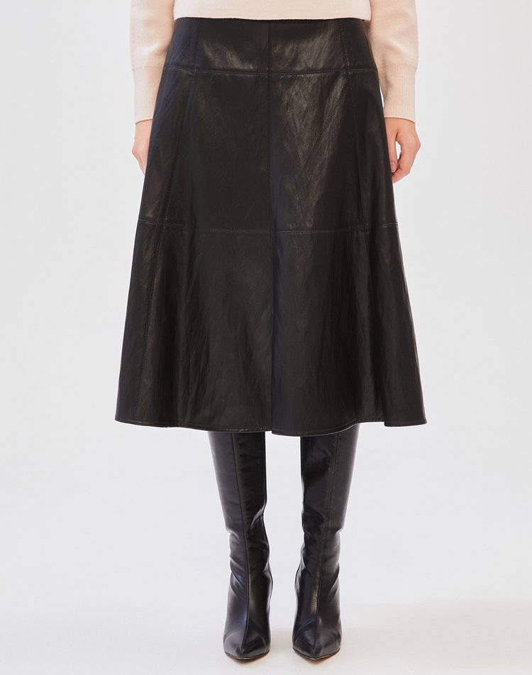 [질스튜어트 뉴욕 여성]블랙 절개장식 가죽 플레어스커트_WJSK4D330BK
