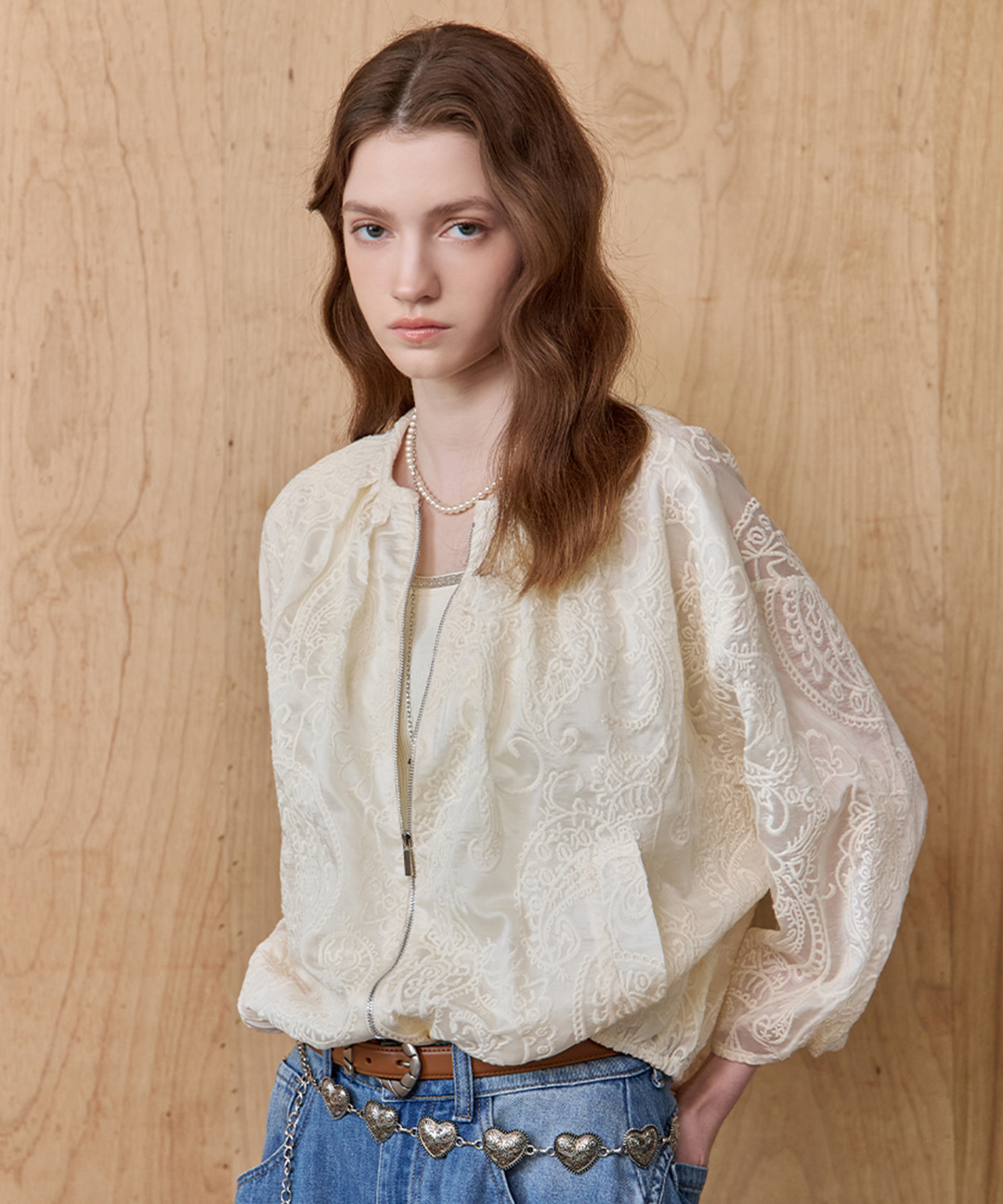 [마쟈] 페이즐리 자수 레이스 블루종 점퍼