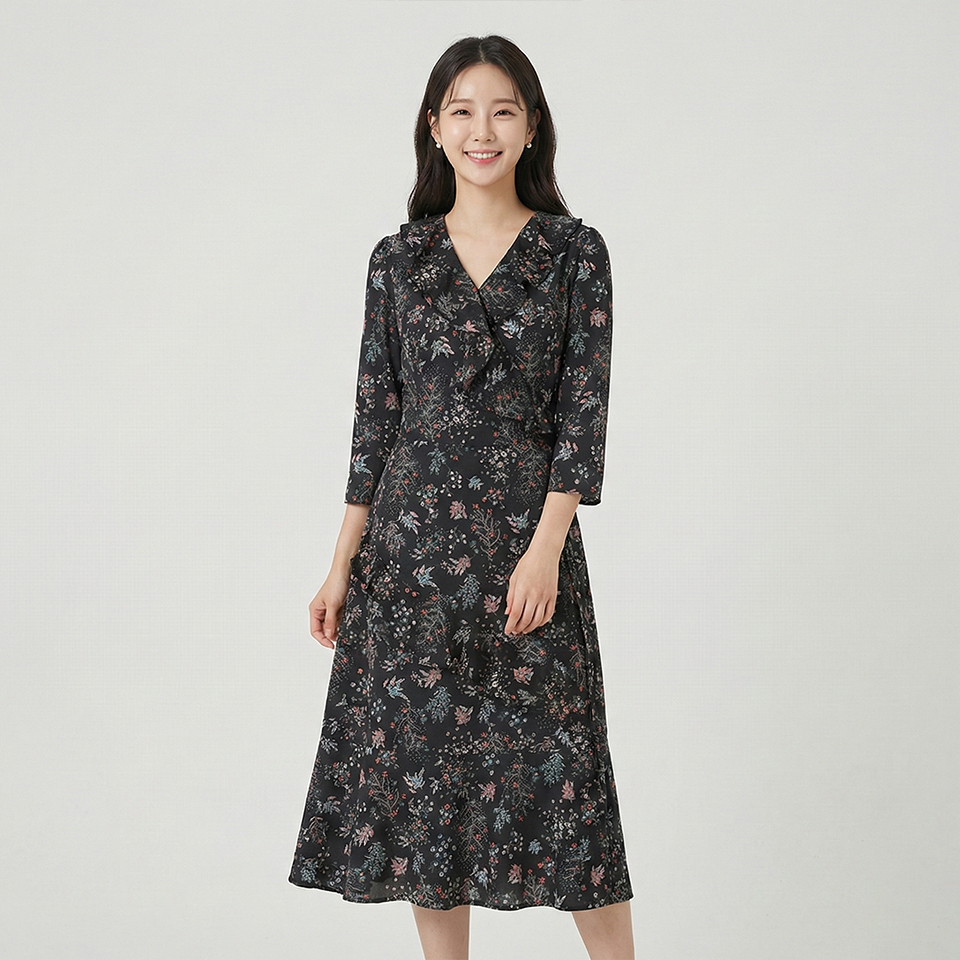 [꼼빠니아]프릴 브이넥 플라워 원피스-CF22OA9001353B