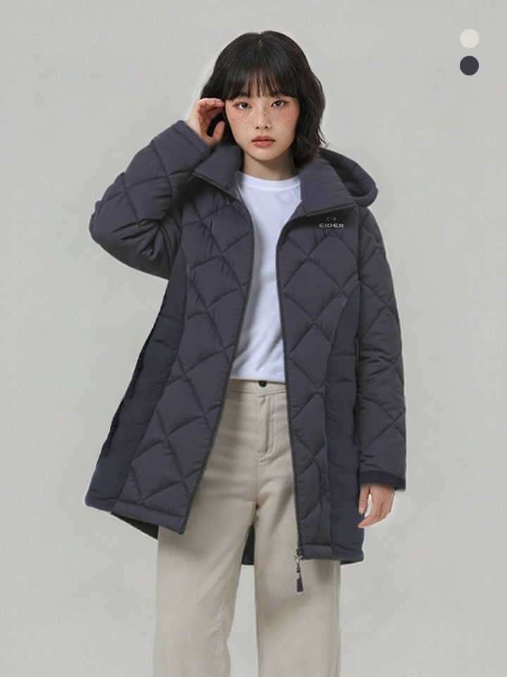 [아이더] 여성 POP 튜브 하이브리드 덕다운 롱패딩 자켓_DWW23584