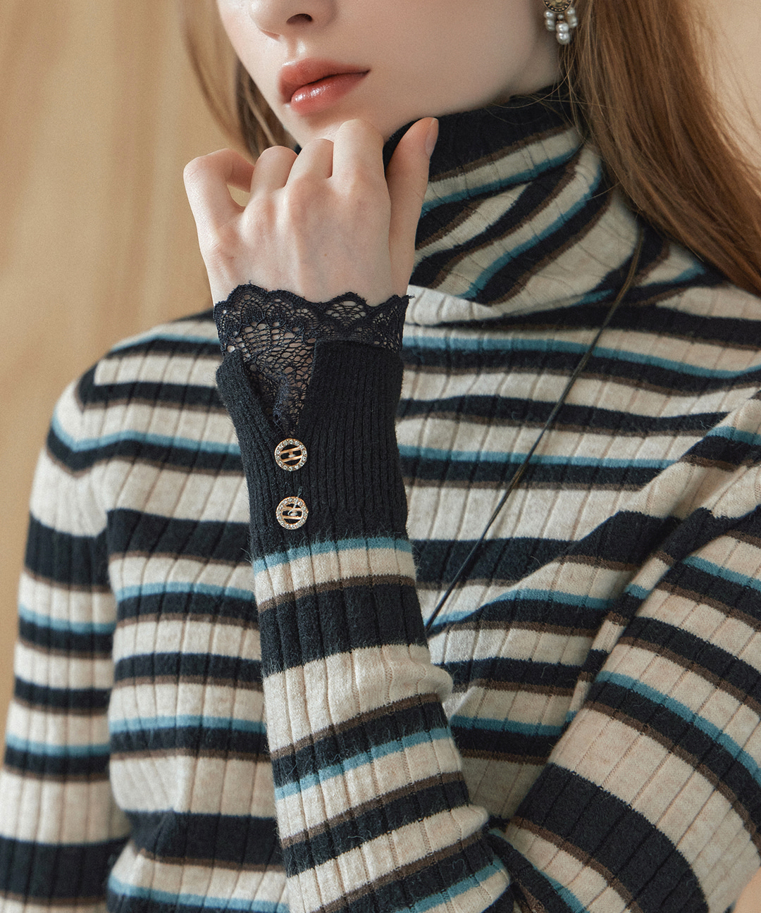 [마쟈] 멀티 스트라이프 니트 목폴라티