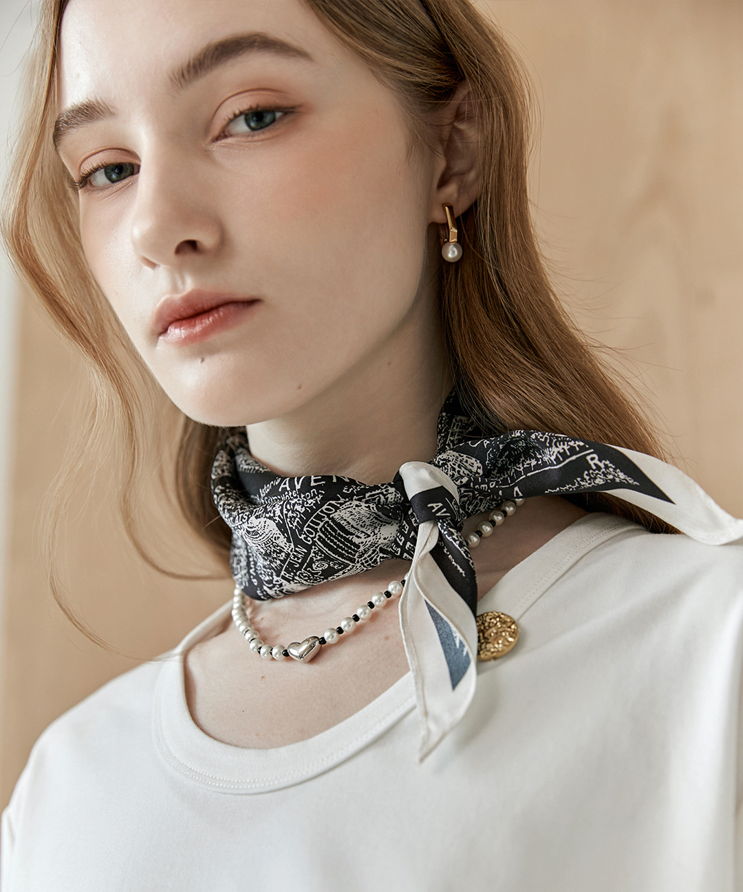 [마쟈] 모노톤 시티 일러스트 실키 쁘띠 스카프