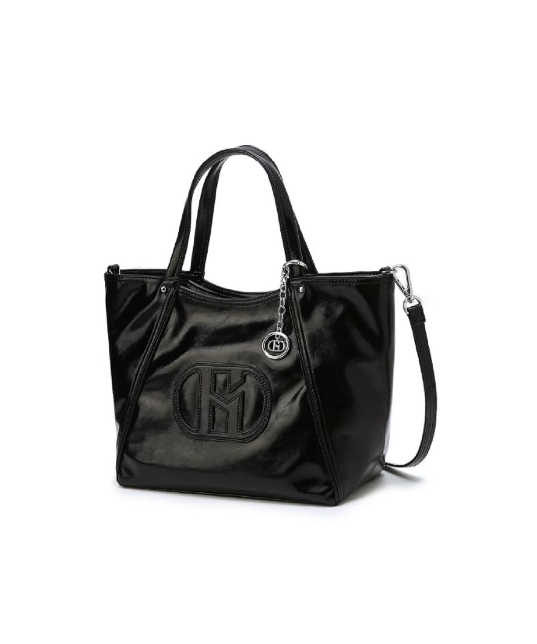 [헤지스] 시그니처 H 패치 블랙 토트겸 숄더백 M (유광)(HIBA5E529B