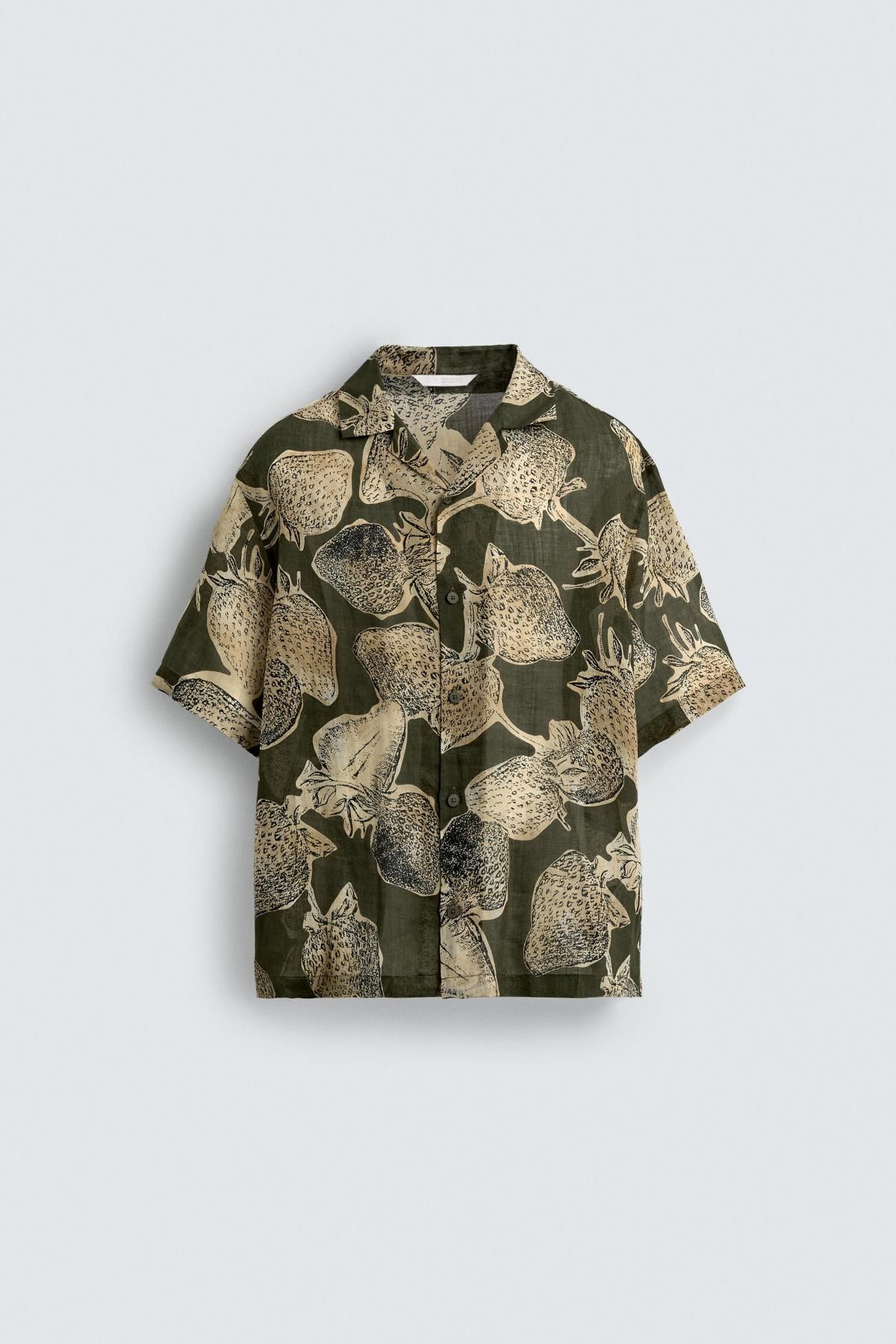 자라 트렌디 프린트 라미 반팔 셔츠 4939/186 KHAKI