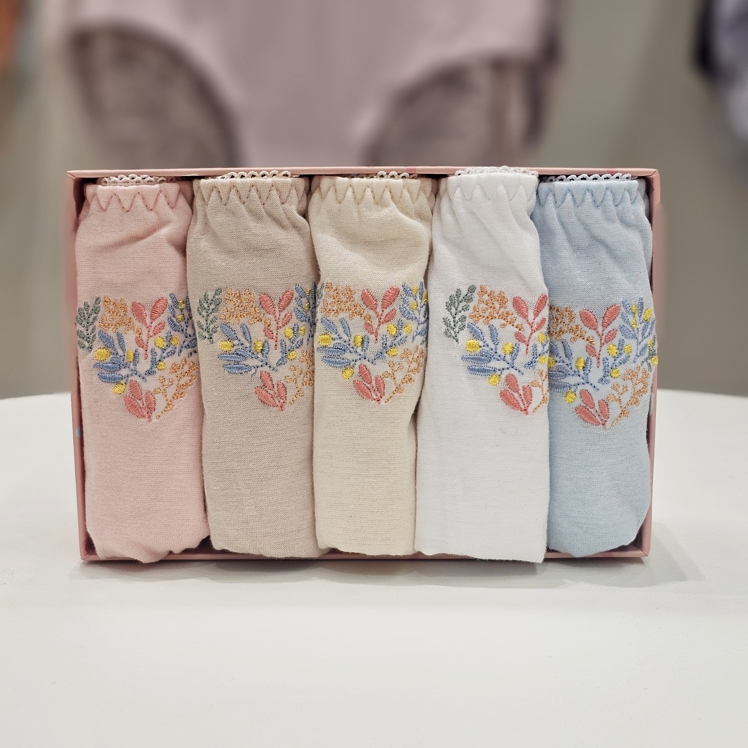 [트라이엄프] 5장세트 50수 하트플라워 자수 맥시타입 순면팬티 TCWPTR16