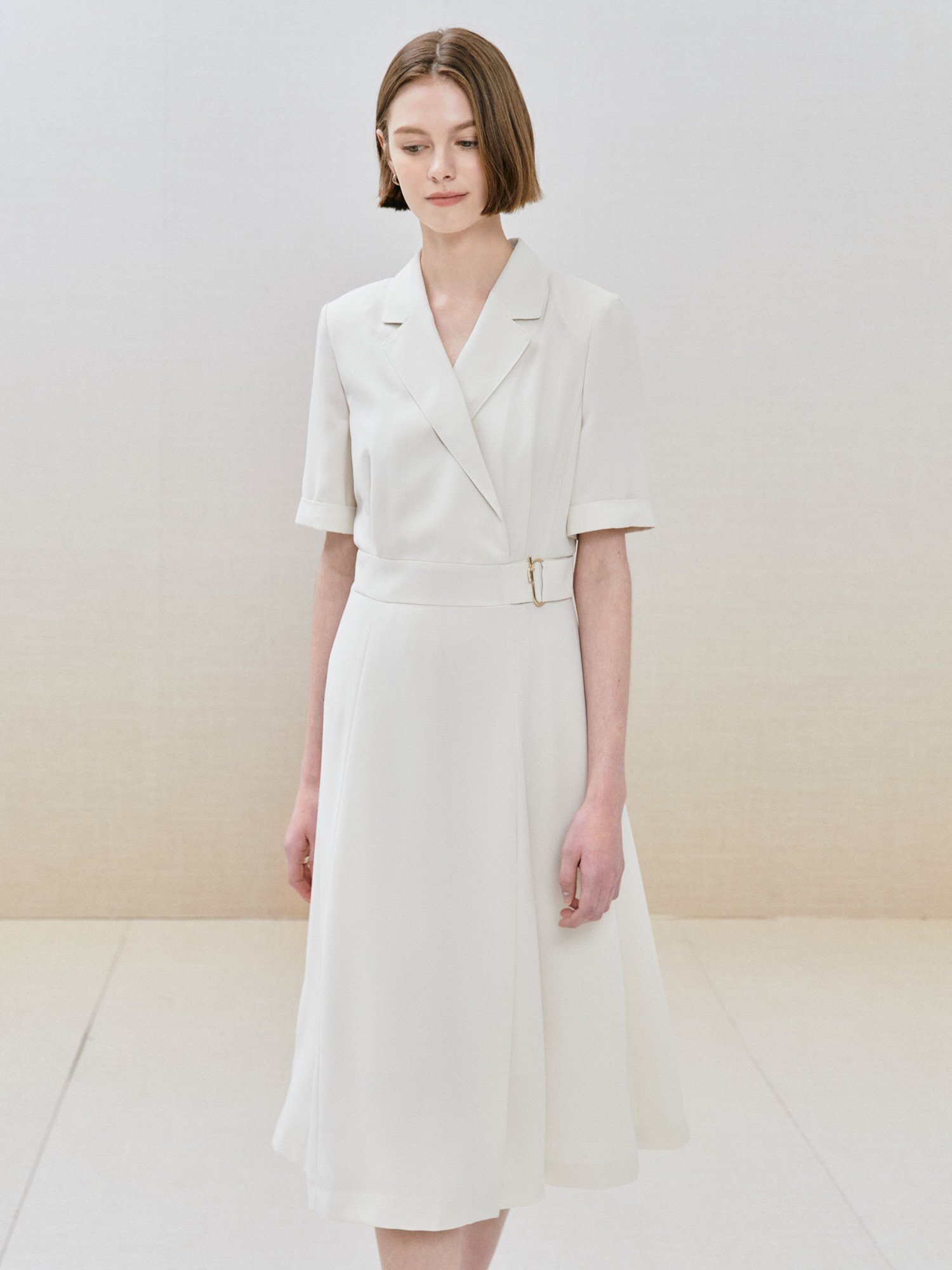 [더아이잗] 벨트장식 테일러드 플레어원피스