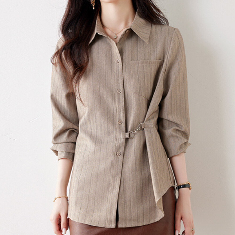 [나바바] NB2854 여성 스트라이프 허리 고리 긴팔 셔츠