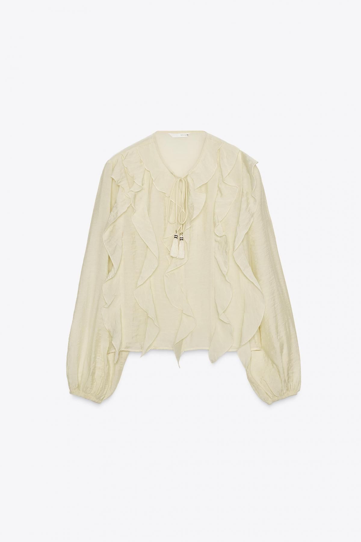 자라 라운드넥 브이넥 테슬 로맨틱 러플 블라우스 3897/165 BUTTER