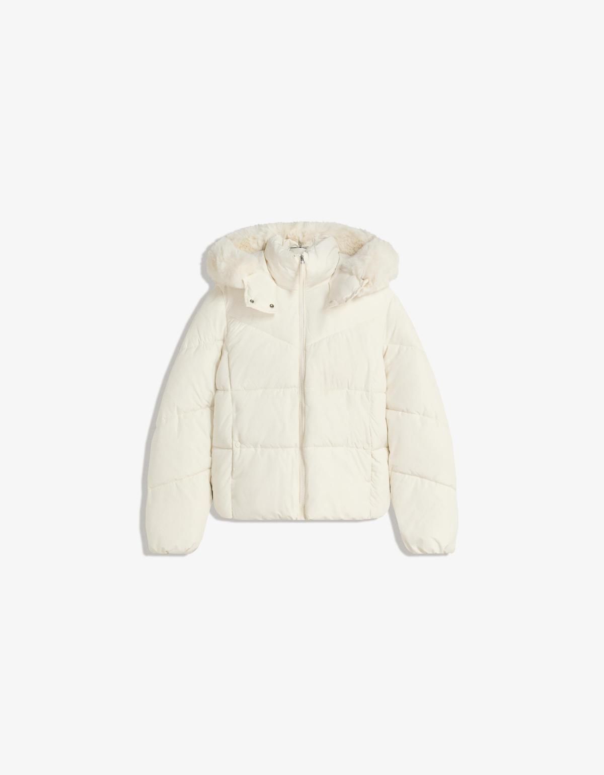 버쉬카 프리미엄 화이트 퍼 후드 숏 패딩 6718/551 SAND