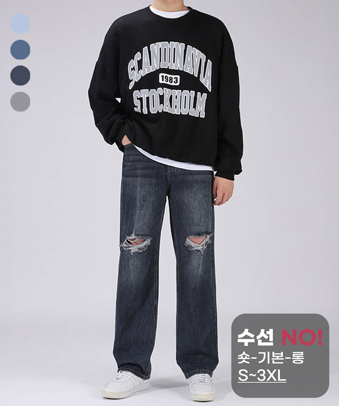사계절 기장 선택 데미지 와이드 인밴딩 데님 청바지 GRCP9084