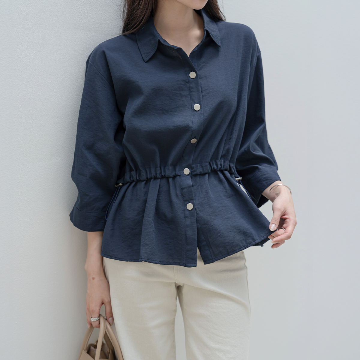 [모노앳디] 프레노 카라 스트링 8부 블라우스