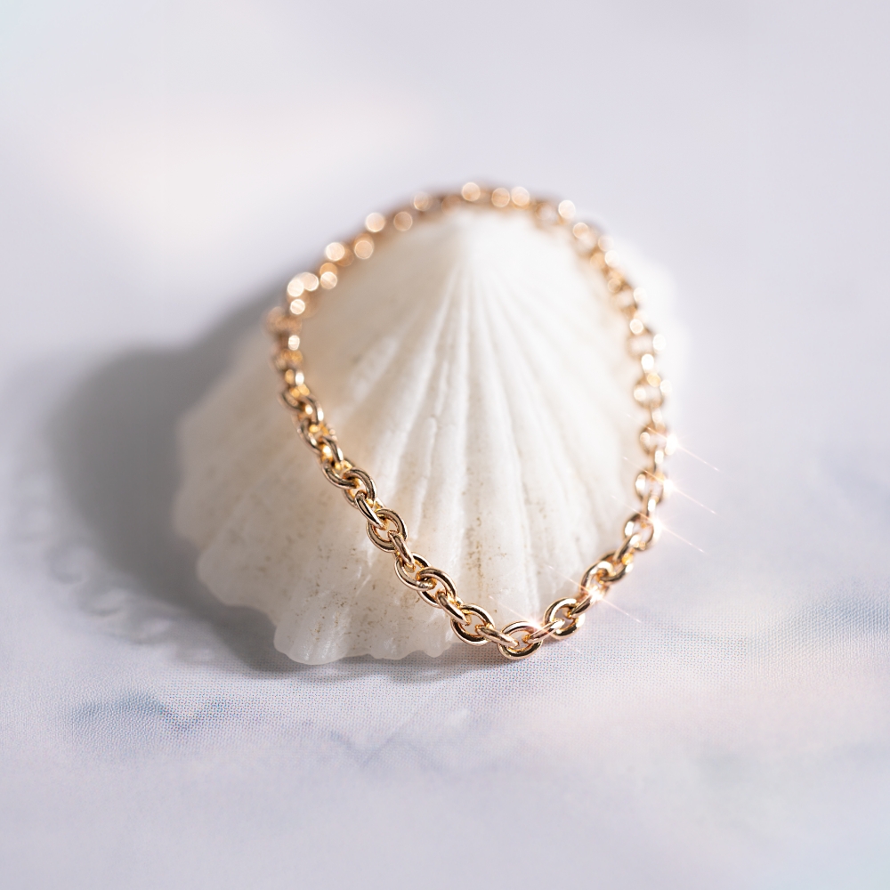 14K 금 클래식 고방 6푼 체인 반지 베이지골드 남자 여자 선물 커플 레이어드링