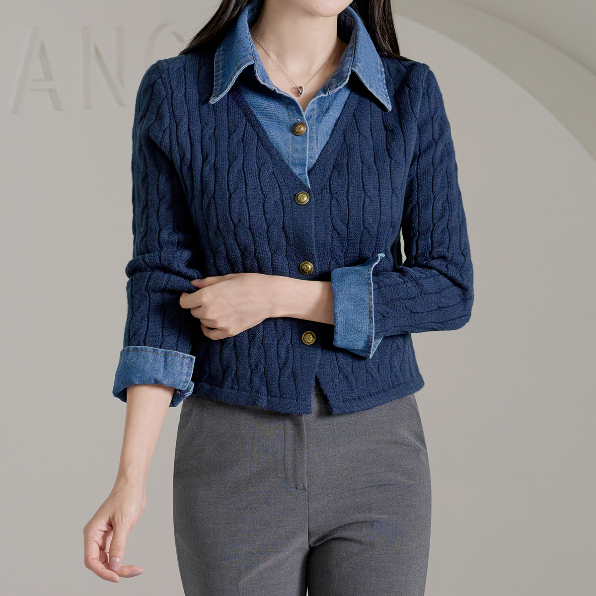 [55~66] 세디 데님 레이어드 니트 가디건