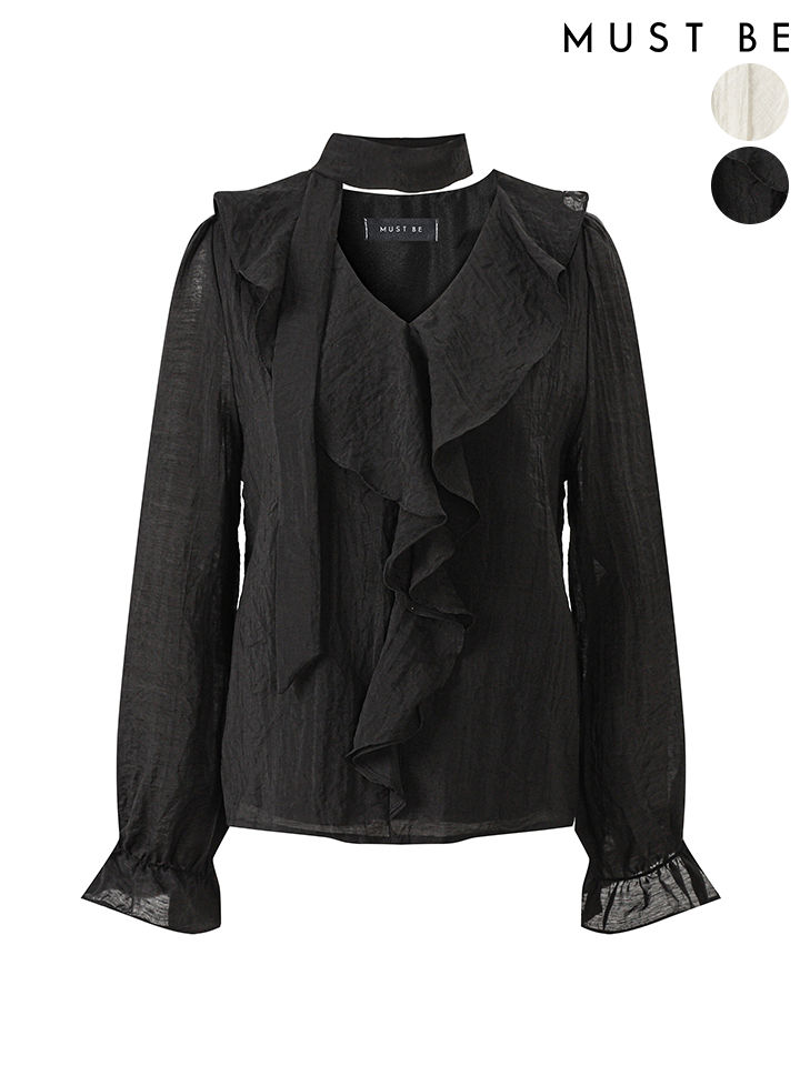 여성 러플 새틴 블라우스 (타이set)