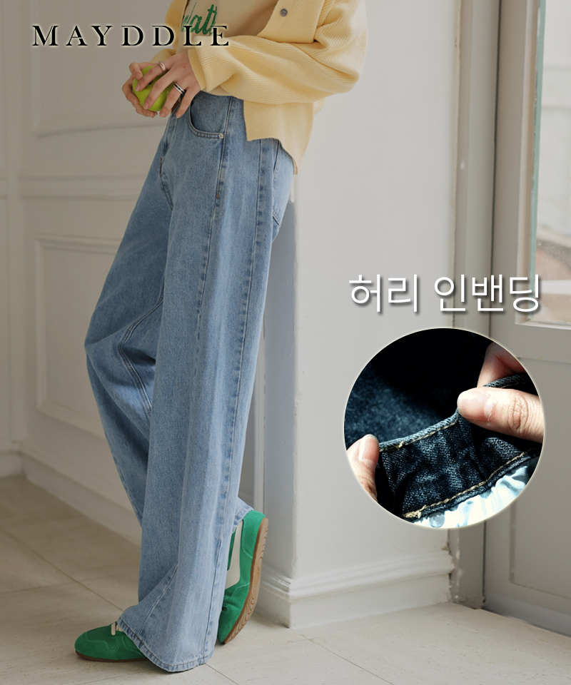 [영상핏]3TYPE 착시효과 와이드데님팬츠 / 탄탄 난스판 스판없는 사선절개 허리밴딩 숏기장 롱기장 키큰녀 키작녀 플러스사이즈 블랙 그레이시진청 진청 연청 봄 가을 간절기 청바지