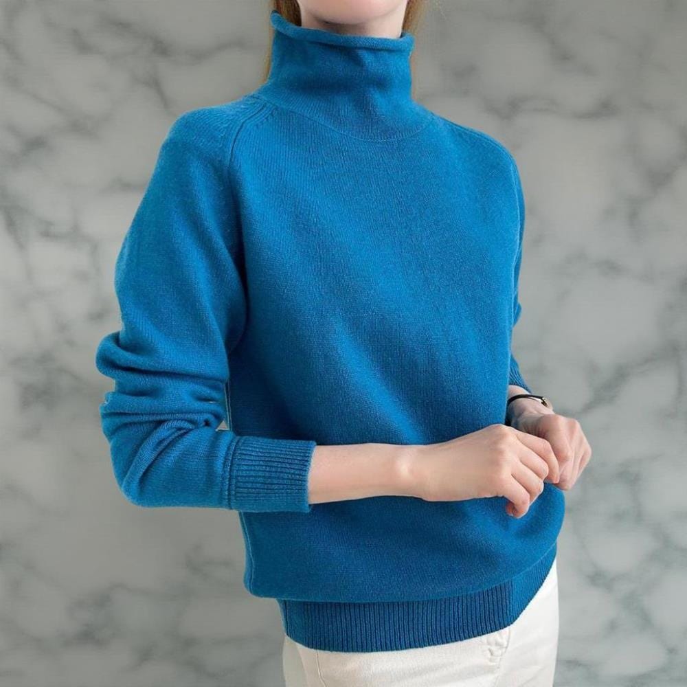 [옷자락] 여성 롤넥 나그랑 메리노울 솔리드 가을 니트