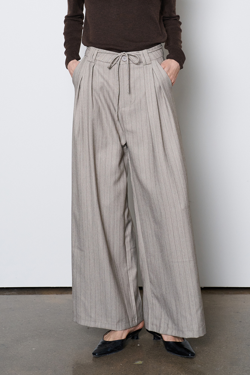 스트라이프 와이드핏 핀턱 롱팬츠 (TX3PT004L0)