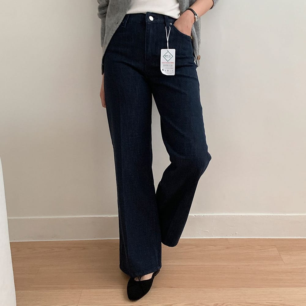 [옷자락] 여자 가을 논페이드 진청 스판 와이드 부츠컷 청바지