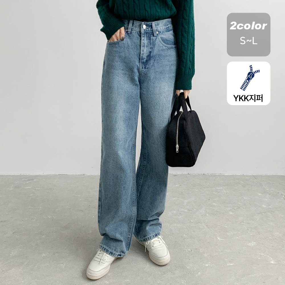 여성 핏 커버 와이드 데님 팬츠